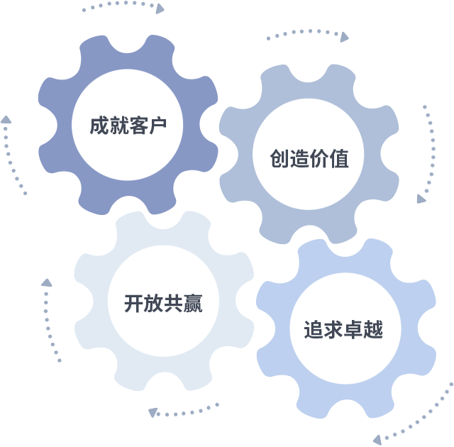 成就客户是一切决策的出发点,创造价值是衡量所有工作的标准,追求卓越是ag九游会j9做事做人的态度,开放共赢是ag九游会j9的格局也是最终的结果。价值观的齿轮环环相扣,推动着组织里的每个人不断向前。